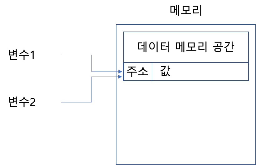 - 하나의 데이터에 대한 주소를 다른 변수가 공유하는 형태