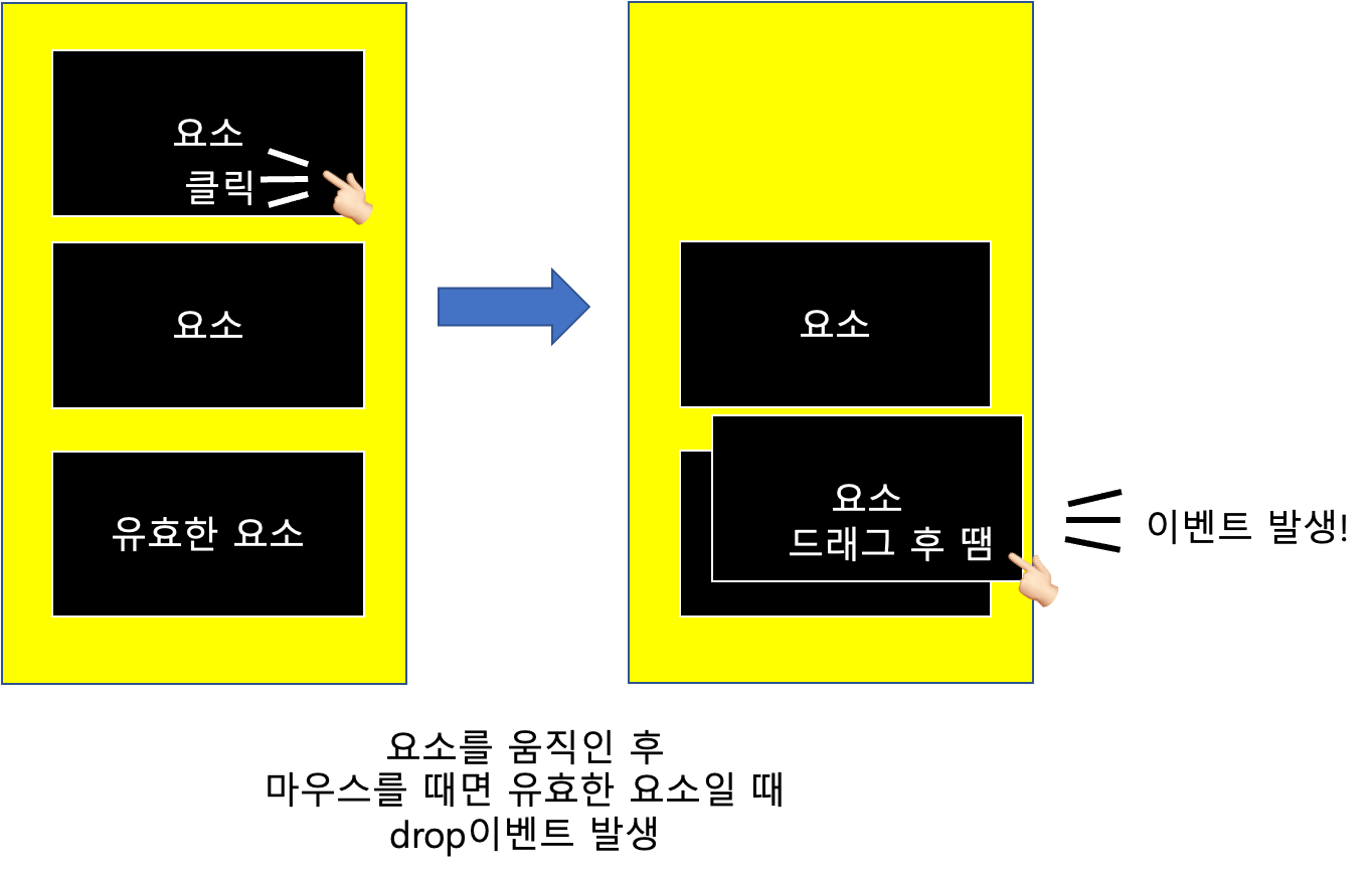 - 드래그를 진행하다가 유효한 다른 요소 위에서 마우스를 땠을 때 발생