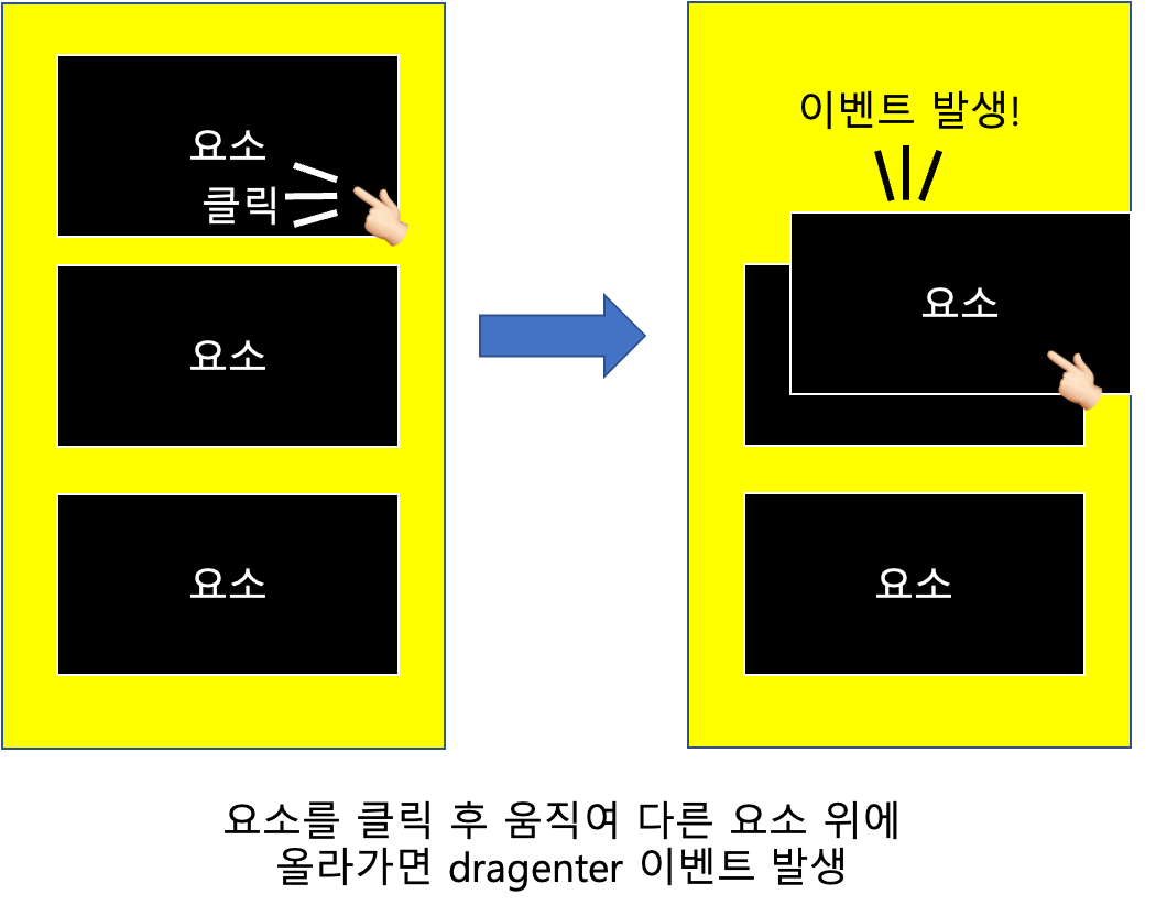 - 드래그 하던 요소가 다른 요소 위에 위치했을 때 발생하는 이벤트