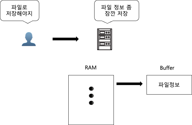 버퍼는 파일 입출력, 스트림 작업 등 특정 작업을 하게 되면 RAM의 공간 일부를 동적으로 할당받아 사용하게 된다.