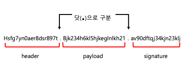 토큰은 header, payload, signature로 나누어지며 "."으로 구분된다.