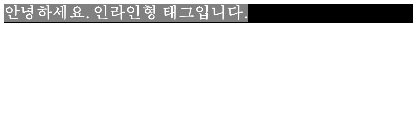 블록형 태그는 가로 축 영역을 전부 사용하였다면 인라인형은 자신이 가지고 있는 내용의 크기만큼만 영역을 차지한다.